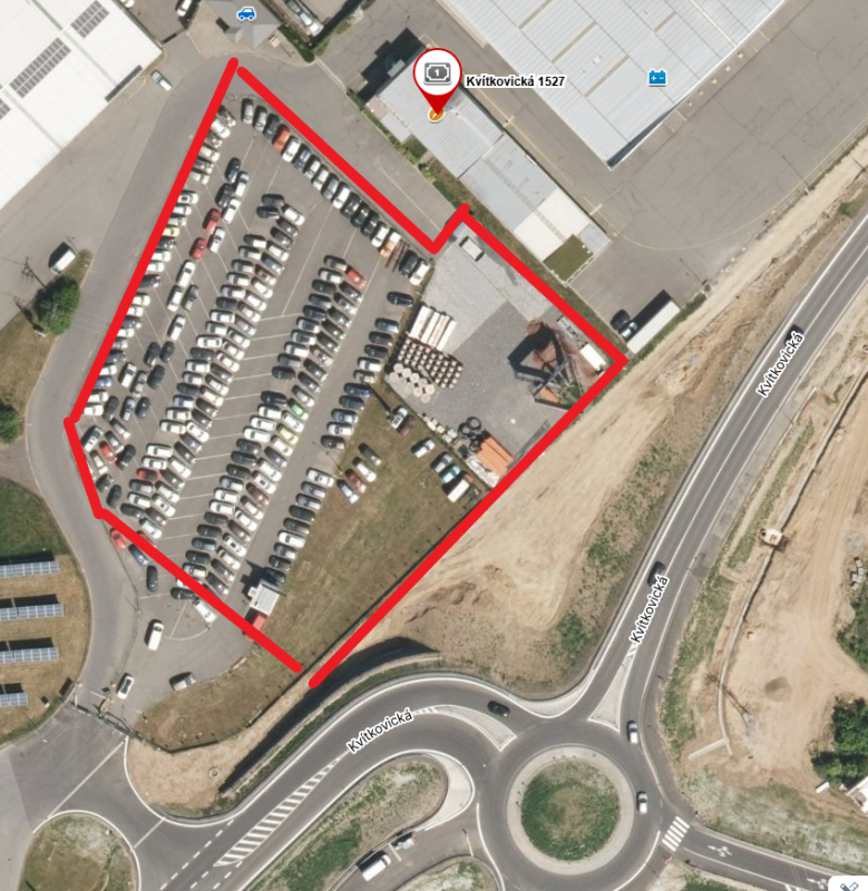 Oplocený uzavřený areál, zabezpečený kamerovým systémem, přímo na průmyslové zóně.